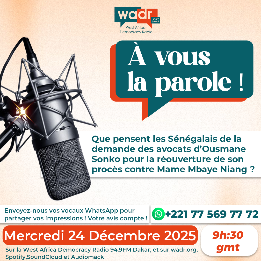 A Vous la Parole du Mercredi 24 Décembre 2025 Réactions sur Demande de Ousmane Sonko de rouvrir le dossier de diffamation ayant conduit à sa mise à l’écart de la présidentielle de 2024