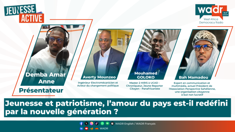 Nouvel épisode dans votre émission jeunesse active. Aujourd’hui nous nous intéressons au patriotisme avec ce thème « “Jeunesse et patriotisme, l’amour du pays est-il redéfini par la nouvelle génération ? » Avec moi aujourd’hui pour parler de ce thème MouhamedGolocko,…